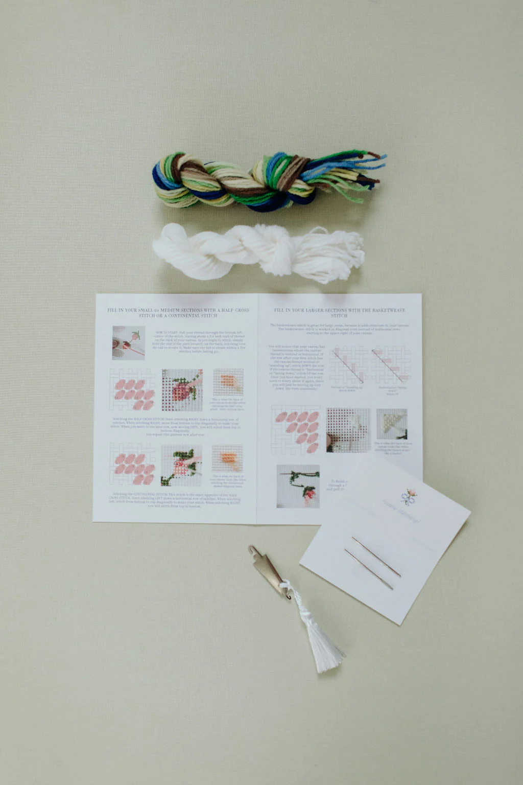 Our Flower Basket needlepoint canvas & Kit is a 4” by 4” design, hand painted on 12 mesh canvas, 8” x 8” total canvas size.
