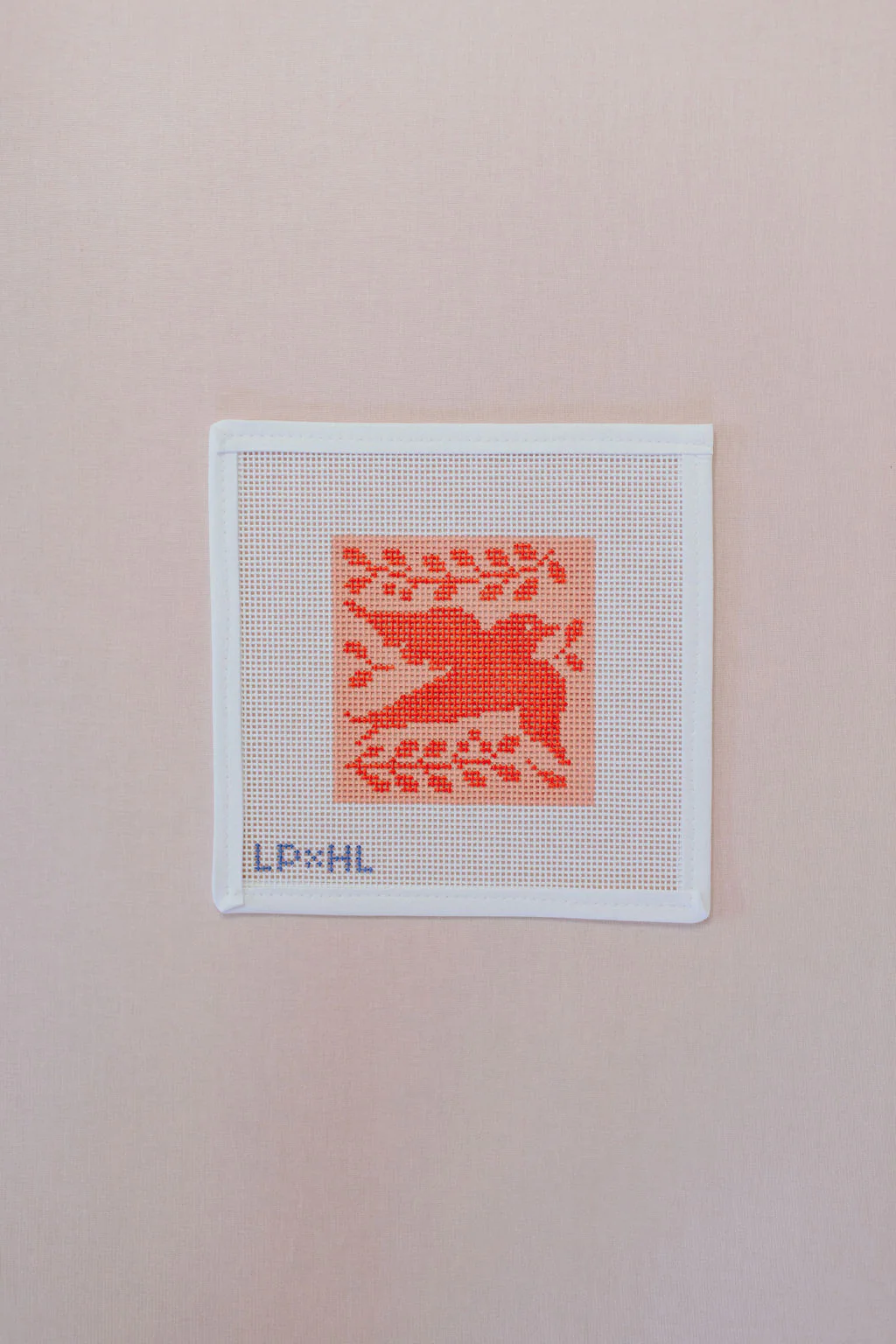 This beautiful dove design is based on a traditional Mexican embroidery and translated to needlepoint canvas, in partnership with embroidery designer Hibiscus Linens. This design is 4x4, with a total canvas size of 7x7. This is wonderful finished as a coaster or framed.